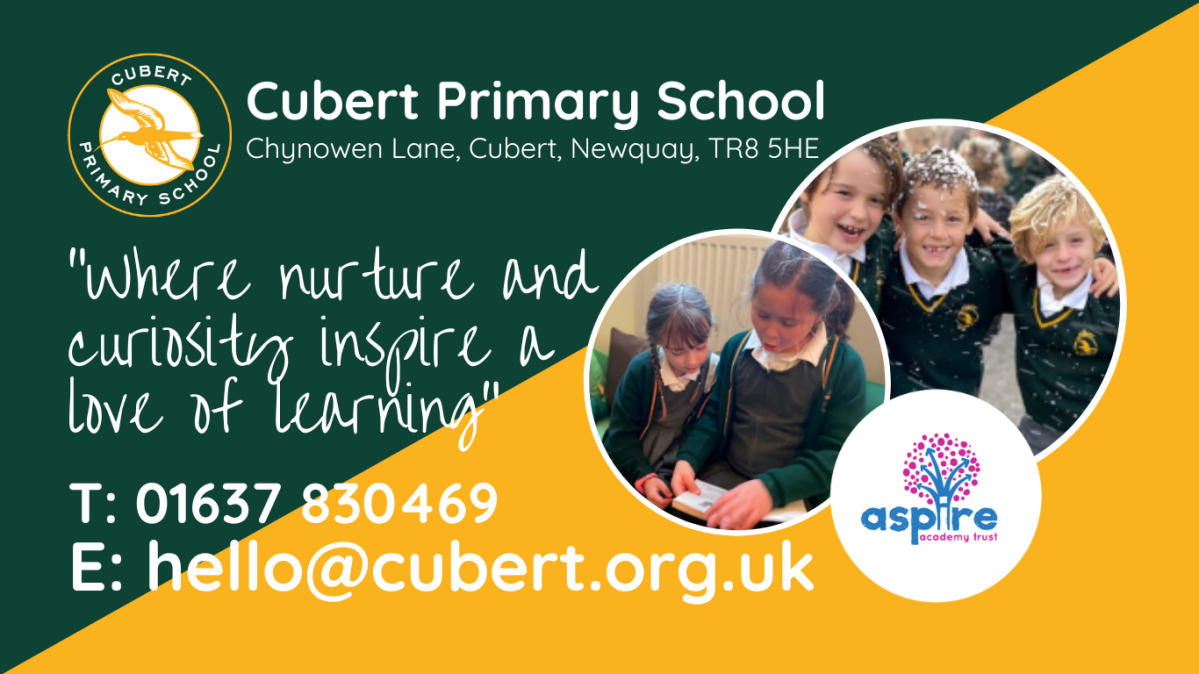All of this links together with our strapline around learning at Cubert Primary School, 'Where nurture and curiosity inspire a love of learning'.